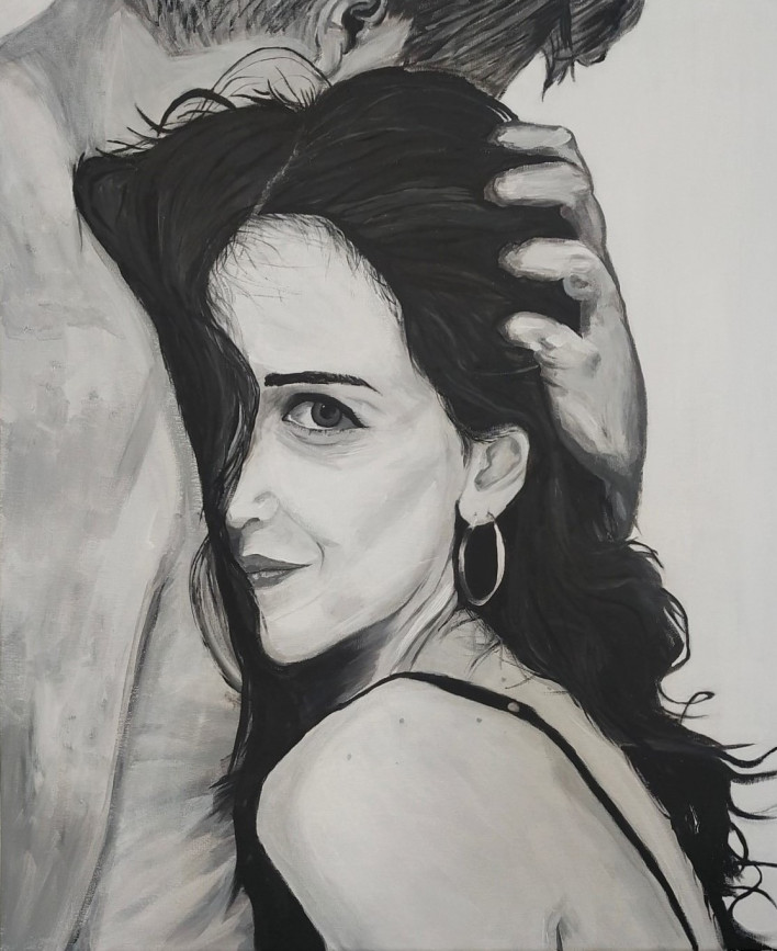 Chaque toile commence d’abord par une pensée. Elle prend forme à travers la peinture acrylique sur toile. Je travaille à partir de photographies qui m’interpellent par leur beauté, leur souvenir ou leur couleur, puis je cherche à les traduire en peinture.